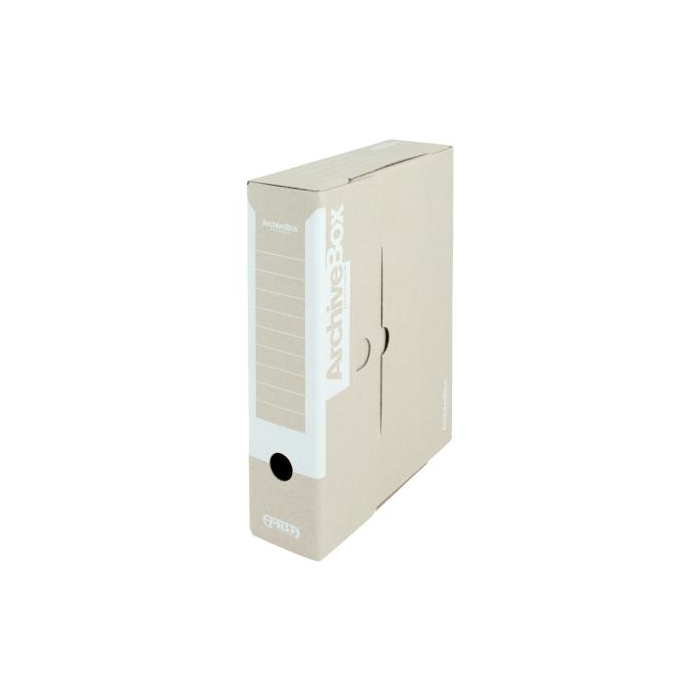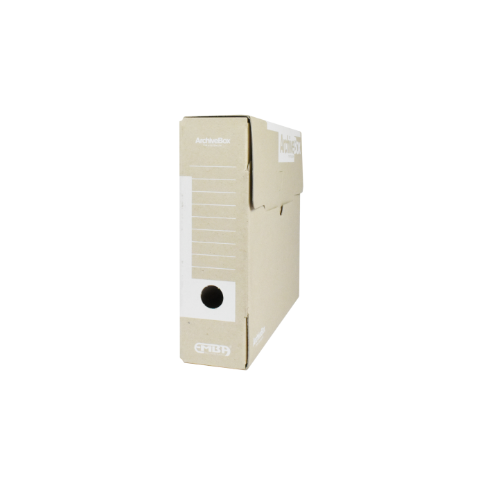 Systém archívnych boxov a škatúľ z vlnitej lepenky. Dodávané v rozloženom stave. Farba prírodná hnedá. Archívny box z hladkej ručnej lepenky, 1 000 g/ m². Konštrukčné riešenie boxu umožňuje rýchly prístup k vloženým dokumentom. Rozmery