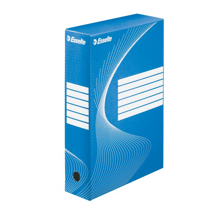 Archívny box z recyklovaného kartónu vo sviežej farbe VIVIDA na archiváciu dokumentov do formátu A4 s otvorom na ľahkú manipuláciu. Predtlač na popis na dlhšej i kratšej strane umožňuje skladovanie vo vodorovnej aj zvislej polohe. Box je využiteľný samostatne alebo v kombinácii s archivačnými krabicami. Väčšie balenie 25 ks. Chrbát: 80 mm Rozmery (š x v x h):80 x 352 x 250 mm Farba: modrá/biela
