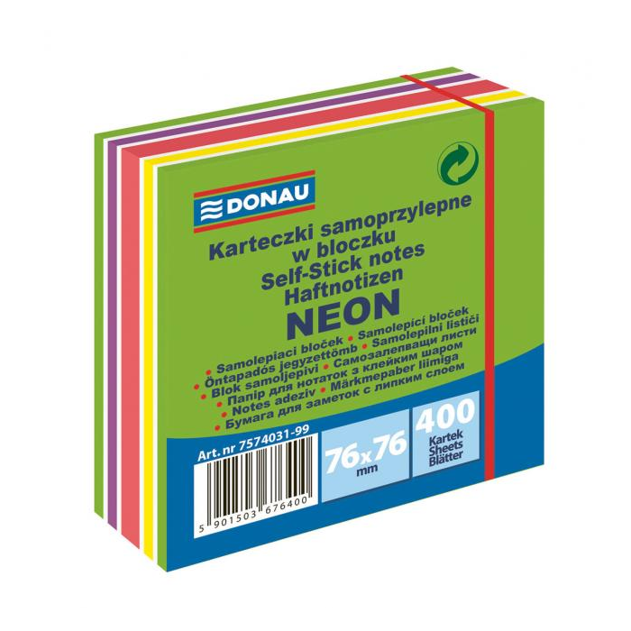 Bloček Donau 76 x 76 mm, mix neónových farieb, zelená, 400 lístkov