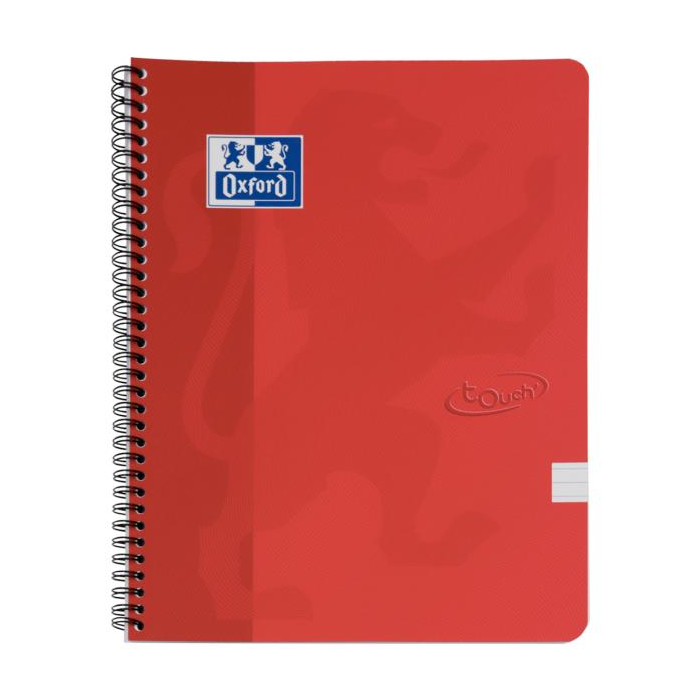 Blok špirálový Oxford Nordic Touch A4+/70 listov linajkový, červený na dvojitej čiernej špirále, dosky z tvrdého kartónu so soft touch povrchom, kompatibilný so SCRIBZEE, biely, dokonale hladký papier Optik Paper+, neprepíja, certifikácia EÚ Ecolabel.