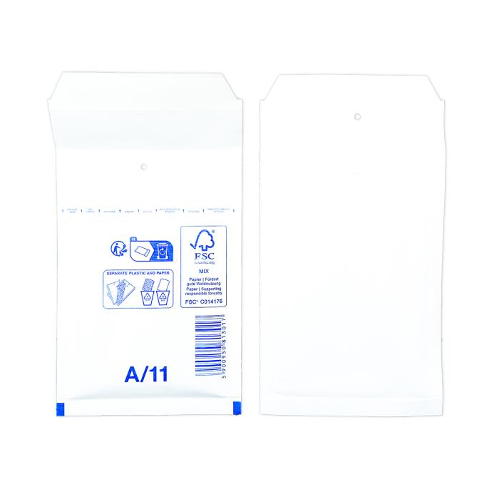Extrémne ľahké, bezpečné a hospodárne obálky. Jednoduchý spôsob balenia samolepiacim uzáverom. Vďaka špeciálnej fólii s vankúšikmi, plnenými vzduchom a papieru Kraft, potiahnutému polyetylénom, sú obálky elastické a odolné voči roztrhnutiu a vode. Farba biela. Vnútorný rozmer 10 x 16,5 cm.
