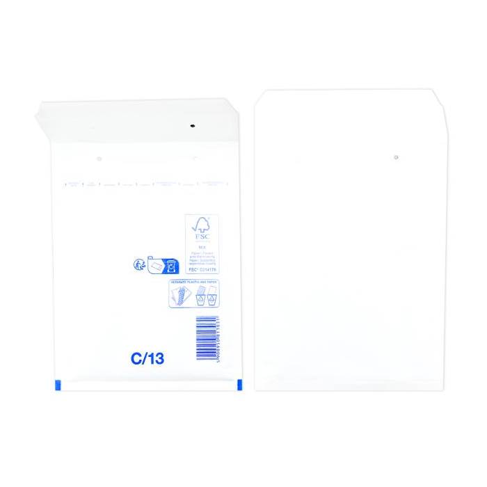 Extrémne ľahké, bezpečné a hospodárne obálky. Jednoduchý spôsob balenia samolepiacim uzáverom. Vďaka špeciálnej fólii s vankúšikmi, plnenými vzduchom a papieru Kraft, potiahnutému polyetylénom, sú obálky elastické a odolné voči roztrhnutiu a vode. Farba biela. Vnútorný rozmer 15 x 21,5 cm.