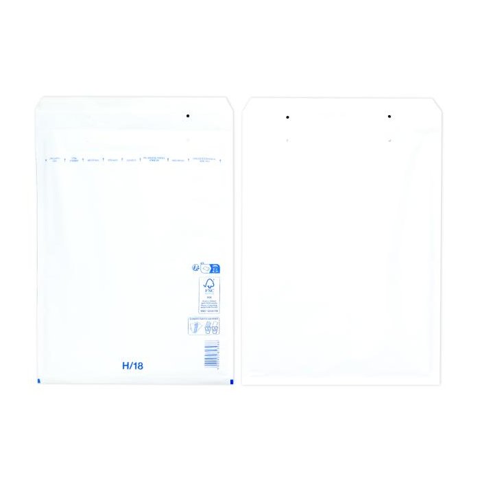 Extrémne ľahké, bezpečné a hospodárne obálky. Jednoduchý spôsob balenia samolepiacim uzáverom. Vďaka špeciálnej fólii s vankúšikmi, plnenými vzduchom a papieru Kraft, potiahnutému polyetylénom, sú obálky elastické a odolné voči roztrhnutiu a vode. Farba biela. Vnútorný rozmer 27 x 36 cm.