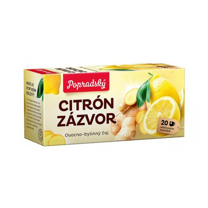 Aromatizovaný ovocno-bylinný čaj so zázvorom a s príchuťou Citrón. Porciovaný v nálevových vreckách.