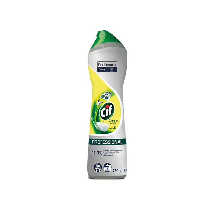 Cif Pro Formula Cream je viacúčelový krémový čistič s mikročasticami ideálny na povrchy v kúpeľni a kuchyni. Účinne odstraňuje úporné škvrny bez poškriabania. Jedinečné krémové zloženie čistí do hĺbky a povrchy znova oživia. Odstraňuje napálené zvyšky jedla, odolnú mastnotu, zvyšky od mydla a vodný kameň. Vhodné použitie na keramiku, smalt, plast, nerezovú oceľ a sklokeramiku.
