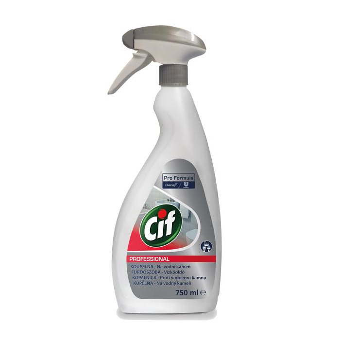 Cif Pro Formula Washroom (Kúpeľňa) odstraňuje vodný kameň, nečistoty a zvyšky mydla. Zanechá žiarivý lesk a dlhotrvajúcu sviežu vôňu. Je vhodný na vane, sprchové kúty, umývadlá, toalety. Možno ho bez nebezpečenstva poškodenia aplikovať na chróm, nerezovú oceľ, plasty a keramiku. Nie je vhodný na mramor a iné povrchy citlivé na pôsobenie kyselín.