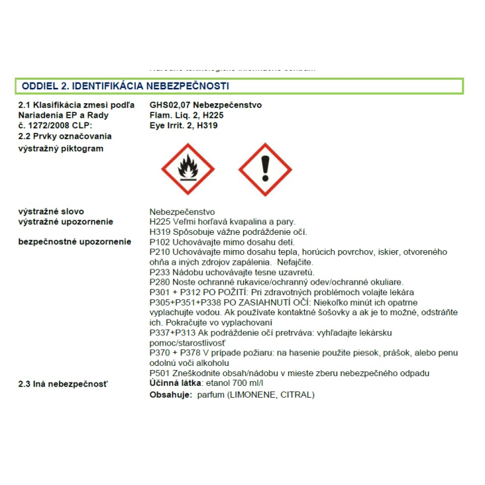 | Typ čistiaceho prostriedku | dezinfekčný roztok |