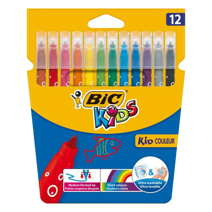 Tenké fixky s priehľadným uzáverom, vyprateľné a umývateľné z rúk a bežných textilií. Doporučené učiteľmi a vhodné pre deti od 5 rokov. Neuzavreté nevyschnú až 3 mesiace. Balenie 12 kusov.
