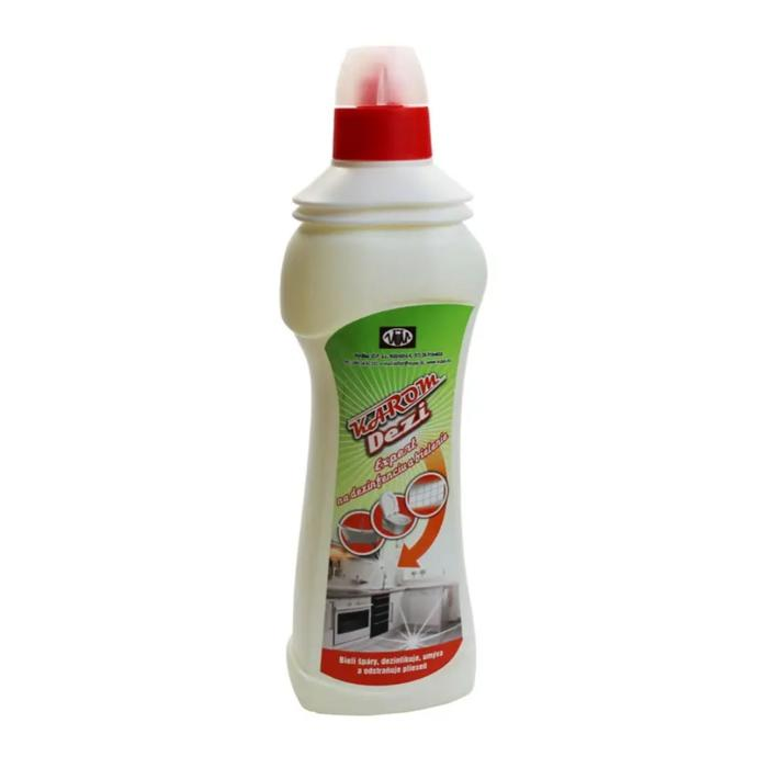 Karom dezi je prípravok, ktorý sa používa na dezinfekciu a čistenie v domácnosti ako napr. podláh, nábytku, kuchynského náčinia a hračiek. Vynikajúco čistí a bieli špáry na obklade a dlažbe. Má hĺbkový antibakteriálny a protiplesňový účinok. Spoľahlivo likviduje baktérie, riasy, nižšie huby. Odstraňuje pachy, odfarbuje a biely textílie a drevo.