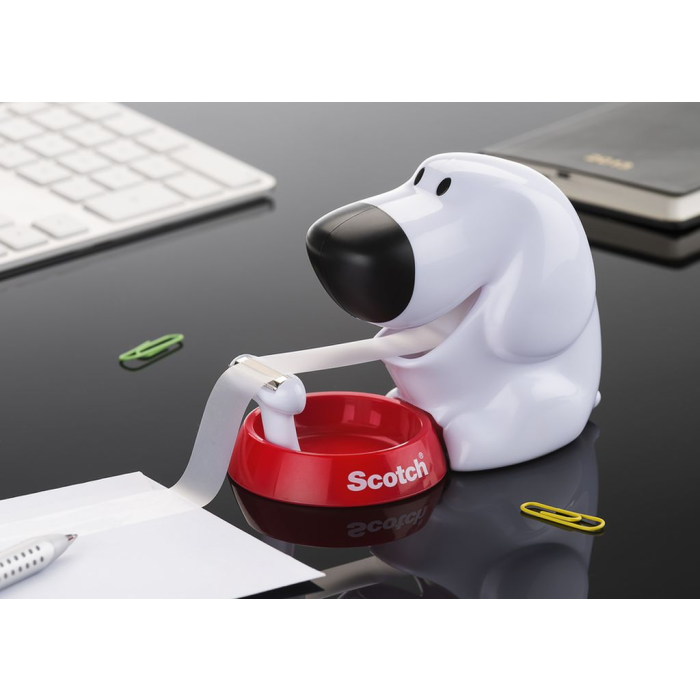 Dispenzor v tvare psa, s ktorým si rozveselíte svoj pracovný stôl. Súčasťou balenia je neviditeľná páska Scotch Magic rozmerov 19 mm × 8,89 m, 1 rolka. Farba biela/ červená.