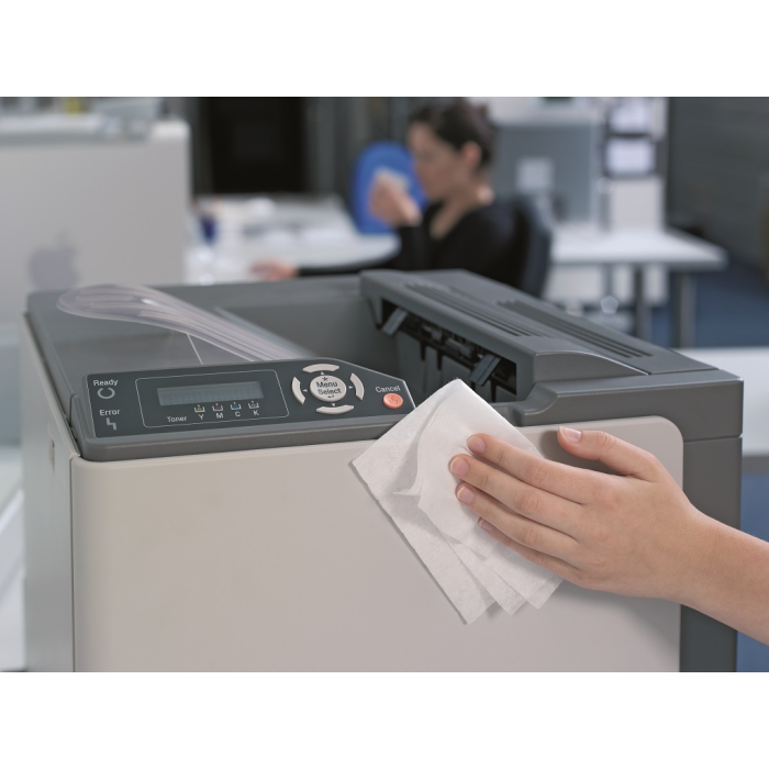Mokré utierky s antistatickým zložením bez obsahu alkoholu na pohodlné čistenie krytov, povrchov, tlačiarní, telefónov a kancelárskeho vybavenia. Praktické balenie - dóza so 100 útržkami oddelenými perforáciou. Tento chemický prípravok je nebezpečný. Typ utierok: mokré