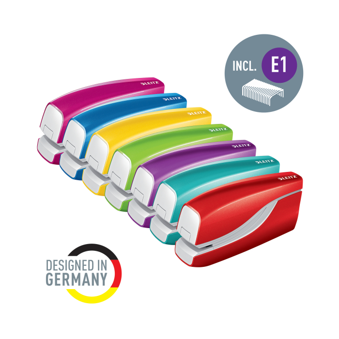 Elektrická zošívačka Leitz New NeXXt WOW. Vďaka jednoduchému ovládaniu jednou rukou je ideálna na časté používanie.