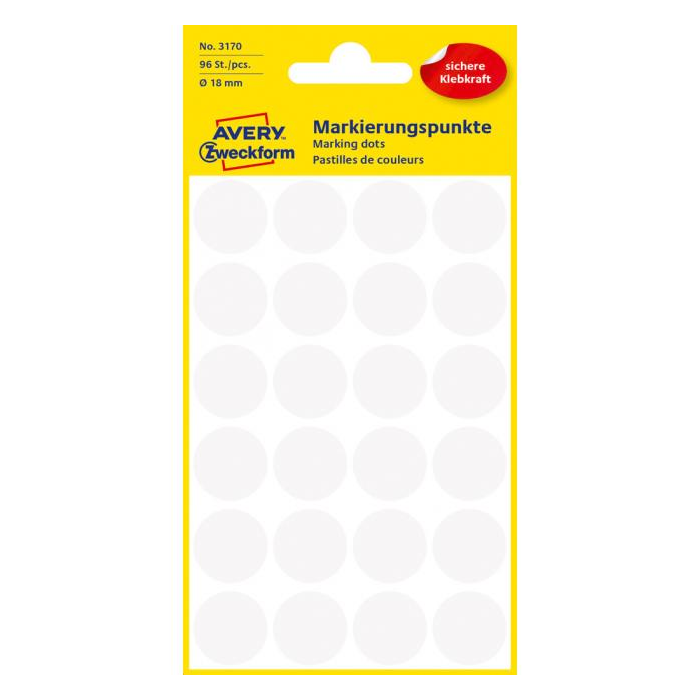 Etikety kruhové 18mm Avery biele