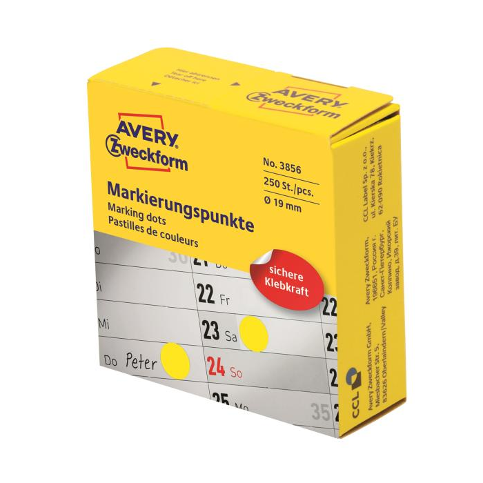 Etikety kruhové 19mm Avery žlté v dispenzore