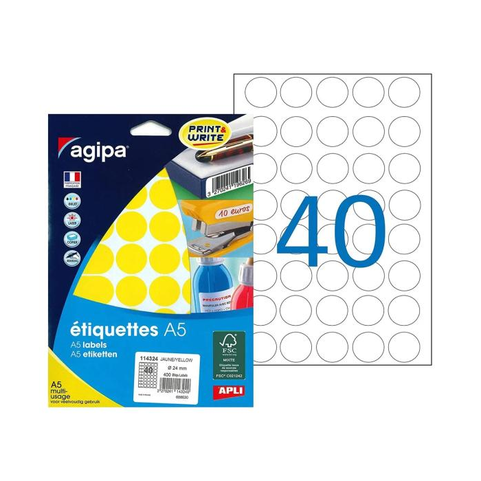 Etikety kruhové 24mm Agipa A5 žlté