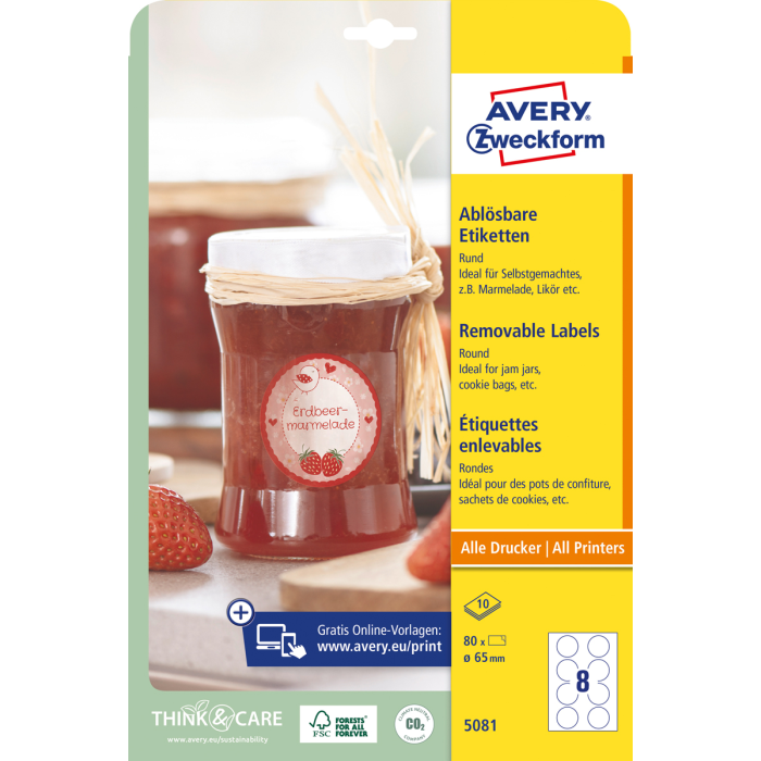 od konkurencie. Spoľahlivá priľnavosť ku sklu, fólii aj papieru. Ľahké odlepenie etikiet bez zanechania stôp po lepidle. Vhodné pre všetky druhy tlačiarní. Šablóny a softvér pre tlač etikiet zadarmo - výber z prázdnych či už navrhnutých, moderných