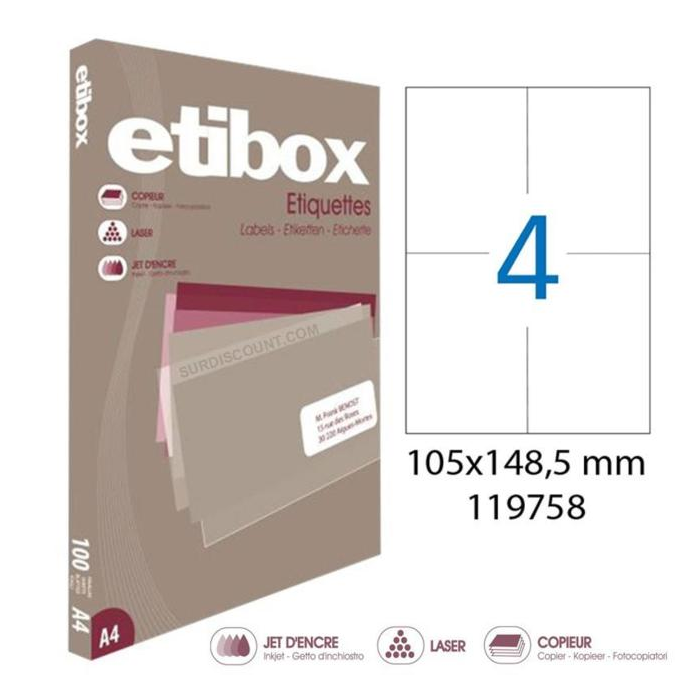 Etikety univerzálne 105x148,5mm Etibox A4 100 hárkov