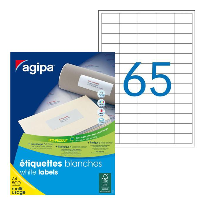 Etikety univerzálne 38x21,2mm Agipa A4 500 hárkov