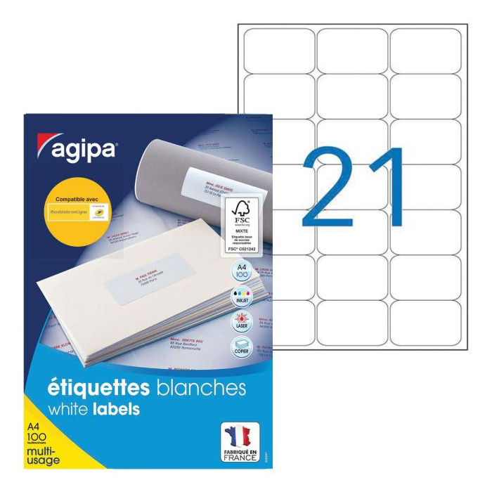 Etikety univerzálne 63,5x38,1mm Agipa A4 100 hárkov
