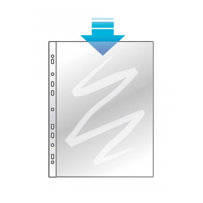 Priehľadný číry euroobal z polypropylénu. Otvor zhora, eurodierovanie, povrch lesklý a hladký. Formát A4. Balený v kartónovej krabici.
