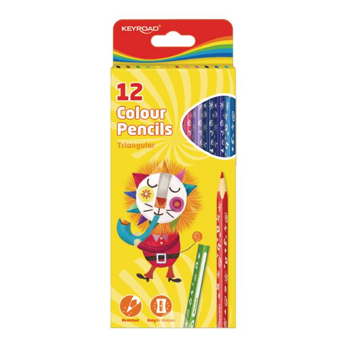 Farbičky trojhranné KEYROAD, 12 farieb