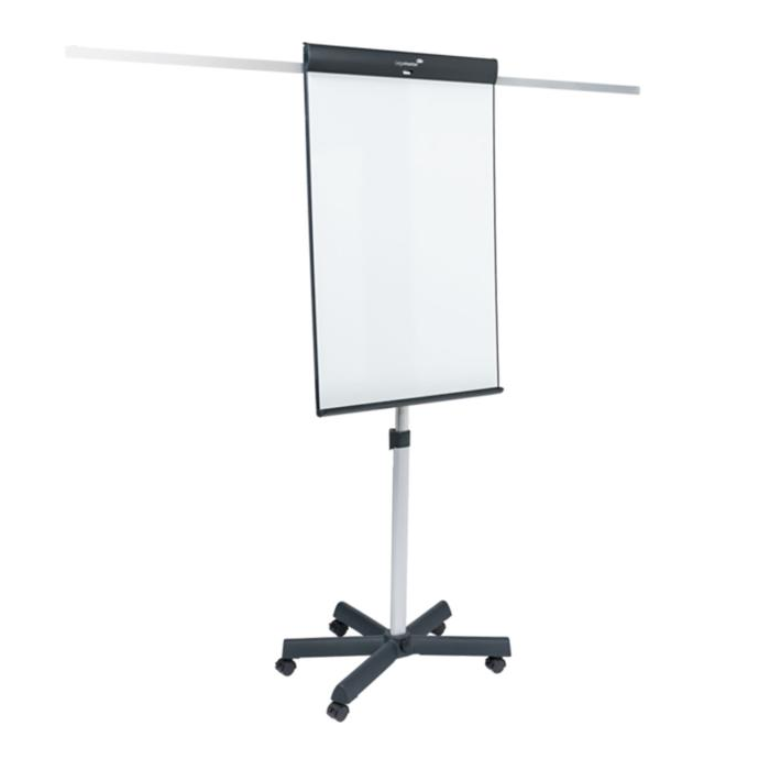 Flipchart atraktívneho dizajnu s lakovanou úpravou povrchu. Postranné ramená, vyklápací držiak papierových blokov s variabilným uchytením všetkých štandardných formátov a vyklápacia odkladacia lišta po celej šírke tabule na odkladanie popisovačov. Pevná základňa v tvare hviezdy s 5-timi kolieskami (2 z nich s aretáciou) pre ľahké posúvanie. Magnetický povrch umožňuje používanie magnetov a popisovanie za sucha stierateľnými popisovačmi, robustnou svorkou ľahko fixujete ideálnu výšku písania. Maximálna výška 205 cm, zastavaná plocha 72×60 cm, rozmery 105×68 cm, hmotnosť 13 kg.
