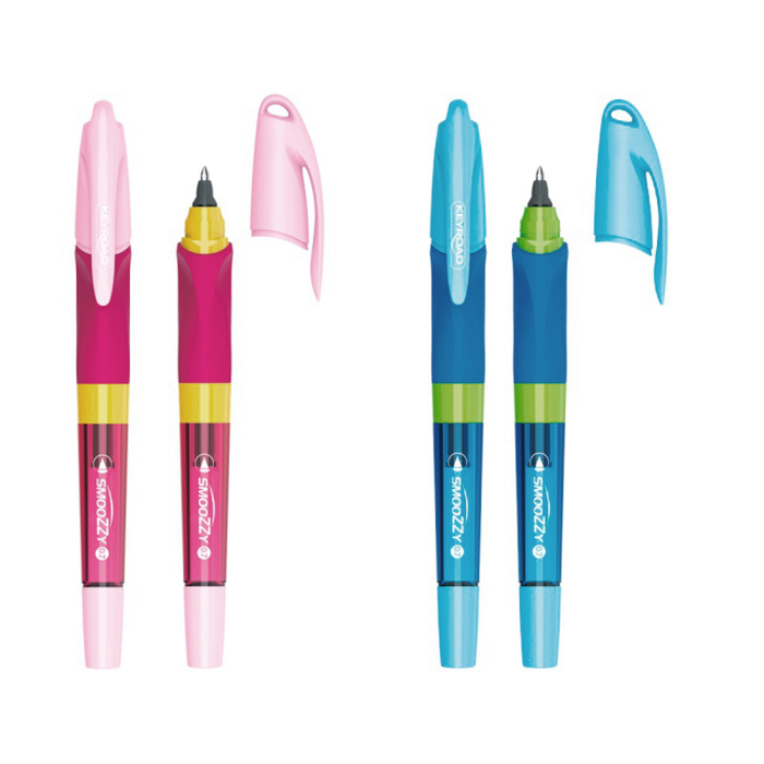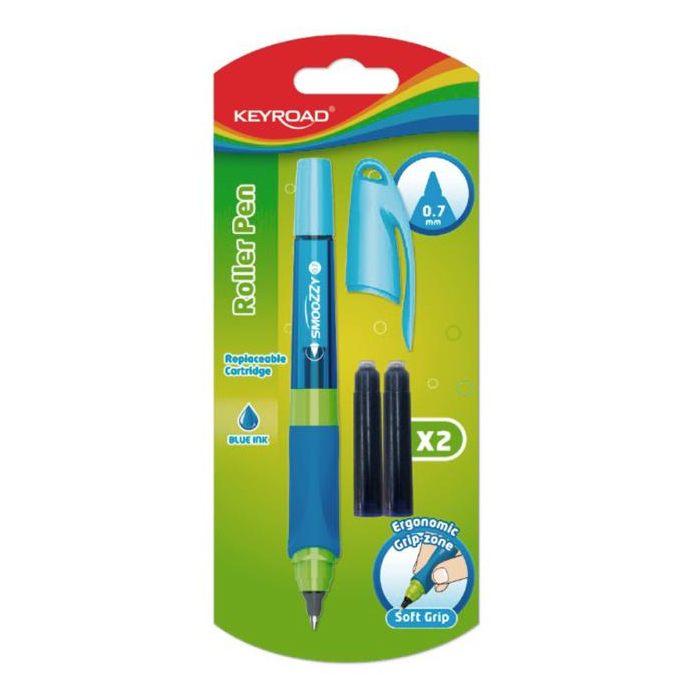 Guľôčkové pero KEYROAD Smoozzy Writer, Ideálne na učenie písania, na použitie v škole aj doma. Ergonomický gumový profil rukoväte, vhodné pre pravákov aj ľavákov. Špička z vysoko kvalitnej nehrdzavejúcej ocele. Hrúbka čiary na písanie: 0,7 mm. Zdarma 2 náplne, s umývateľným atramentom, modrá farba. Balenie: blister. Farba: mix farieb.