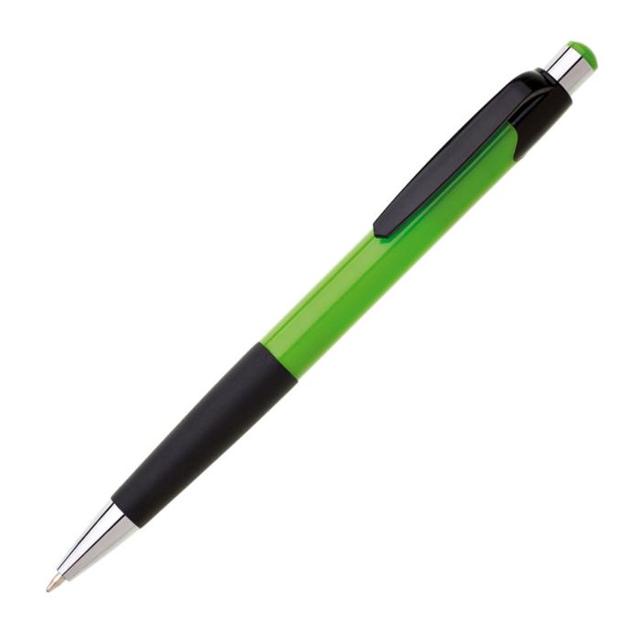 Guľôčkové pero plastové GARNA s gumovým úchopom pre pohodlné písanie. Modrá náplň X20. Kolekcia EVERGREEN. Farba svetlozelená.