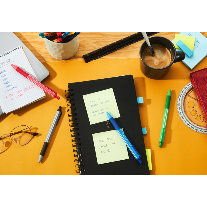 Vďaka svojmu farebnému dizajnu je STABILO pointball colorful sviežim a moderným doplnkom každého stola. Farebne odlíšené telo guľôčkového pera zobrazuje farbu atramentu - už žiadne hádanie, akou farbou píše. Je to skvelý nástroj na rýchle písanie, pretože kvalitný atrament v guľôčkovom pere zaisťuje hladký a rovnomerný tok so šírkou čiary 0,5 mm. Mäkká zóna úchopu poskytuje pohodlné uchopenie aj pri dlhšom písaní. Okrem toho má výrobok certifikát ISCC PLUS, pretože 87 % plastov na biologickej báze použitých na výrobu tela pera pochádza z udržateľných zdrojov (hmotnostná bilancia). Vďaka guľôčkovej náplni STABILO je možné farebnú guľôčku STABILO ľahko dopĺňať znova a znova.