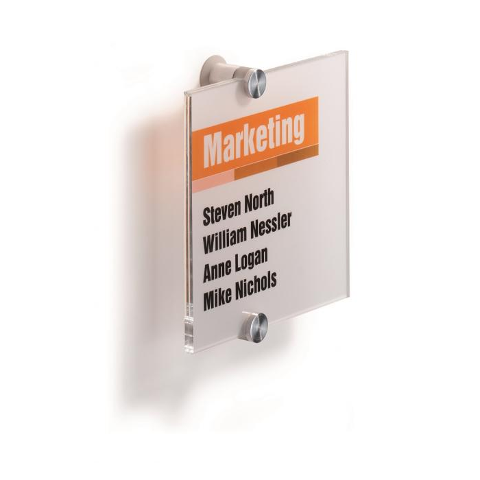 Tabuľka na dvere z novej rady v elegantnom, atraktívnom, a zároveň jednoduchom dizajne. Dodávaná s 2 polopriehľadnými vnútornými listami, vhodnými na farebnú alebo čiernu potlač. Listy sa vložia medzi akrylové panely tabuľky a tabuľka sa prichytí k stene alebo dverám 2 veľkými hliníkovými skrutkami. Ľahká montáž, názorný návod je priložený.