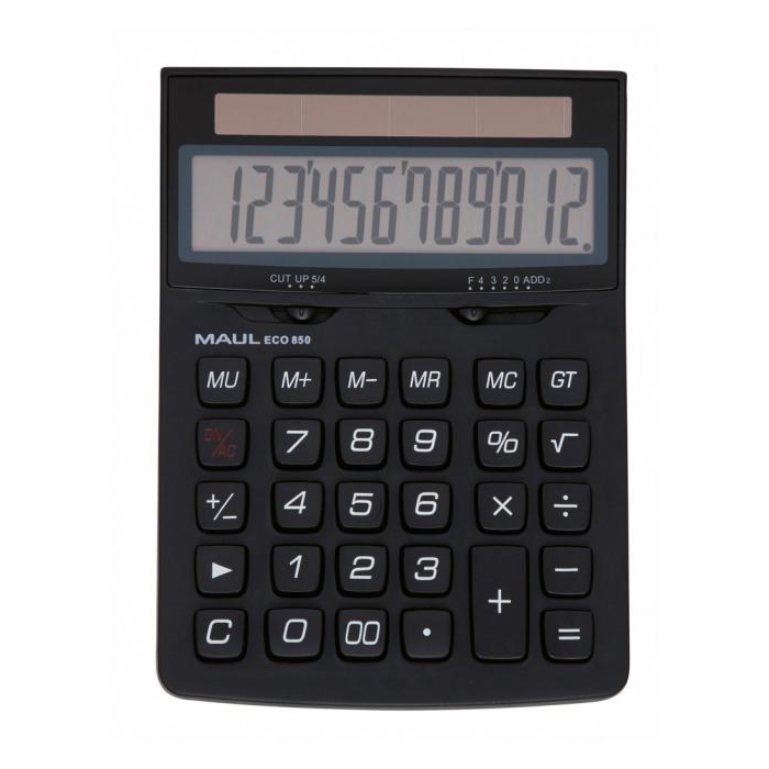 Vrecková kalkulačka s 12‑miestnym LCD displejom, plastovými tlačidlami a štandardnými funkciami.