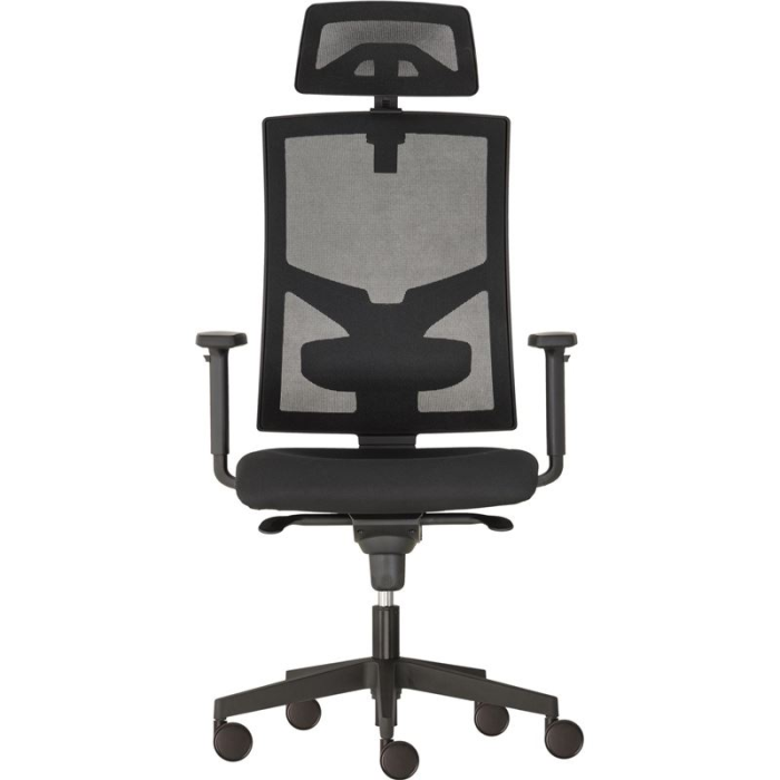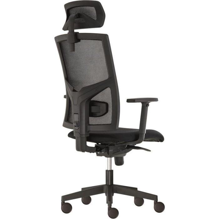 Kancelárska stolička vyššej kategórie z radu GAME s výškovo nastaviteľným sieťovaným operadlom s mechanickým zámkom a samostatne výškovo nastaviteľnou bedrovou opierkou.