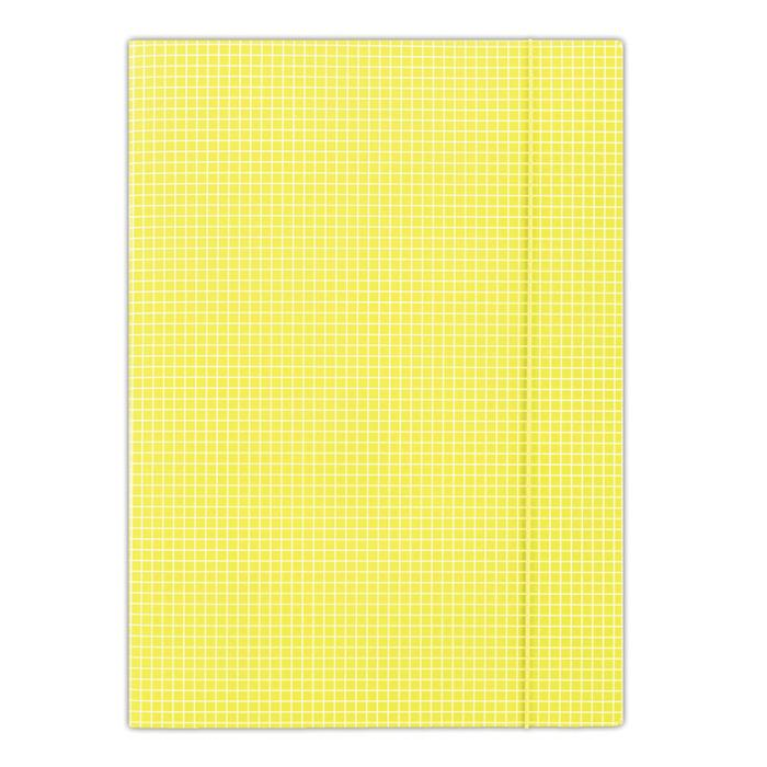 Kartonový obal vyrobený z lepenky s hmotnosťou 400g. Jednostranne potiahnutý vysoko lesklým tlačovým lakom, okrúhla vertikálna guma vo farbe obalu chráni obsah pred vykĺznutím. Károvaná potač. Formát: A4. Farba žltá. Rozmery 232 x 317 mm.