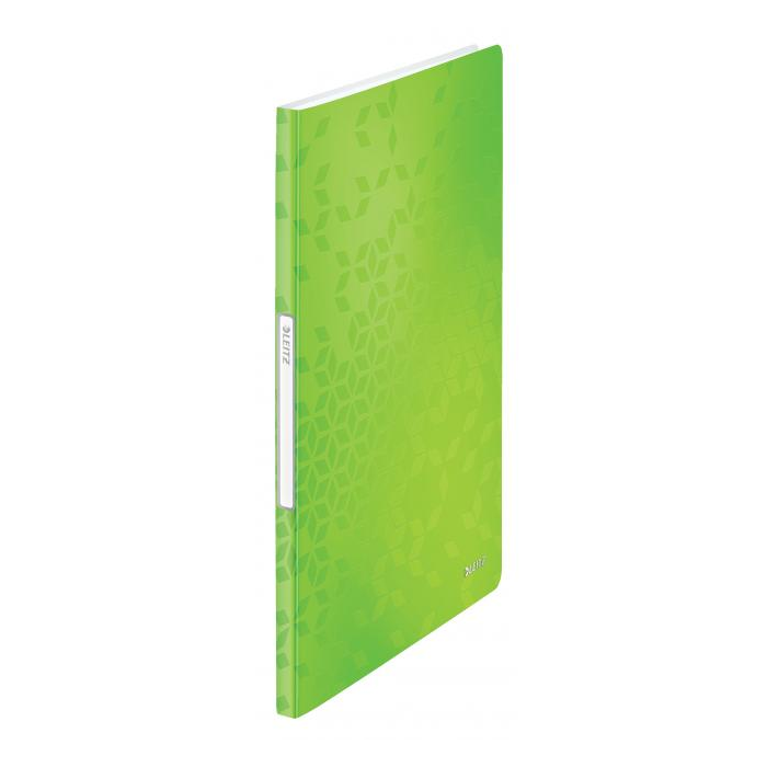 Katalógová kniha na prezentáciu dokumentov formátu A4, do ktorých sa často nahliada. Vyrobená z polypropylénu v dizajne WOW v žiarivých farbách. Vybavená 20 čírymi vreckami hrúbky 45 mic. a samolepiacou chrbtovou etiketou na popis. Väčšie balenie 10 ks. Kapacita 40 listov. Rozmery (š × v × h) 231 × 310 × 13 mm. Farba metalická zelená.