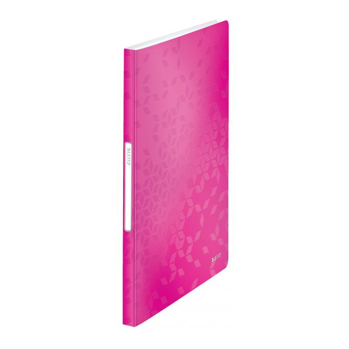 Katalógová kniha na prezentáciu dokumentov formátu A4, do ktorých sa často nahliada. Vyrobená z polypropylénu v dizajne WOW v žiarivých farbách. Vybavená 40 čírymi vreckami hrúbky 45 mic. a samolepiacou chrbtovou etiketou na popis. Väčšie balenie 10 ks. Kapacita 80 listov. Rozmery (š × v × h) 233 × 310 × 16 mm. Farba metalická ružová.