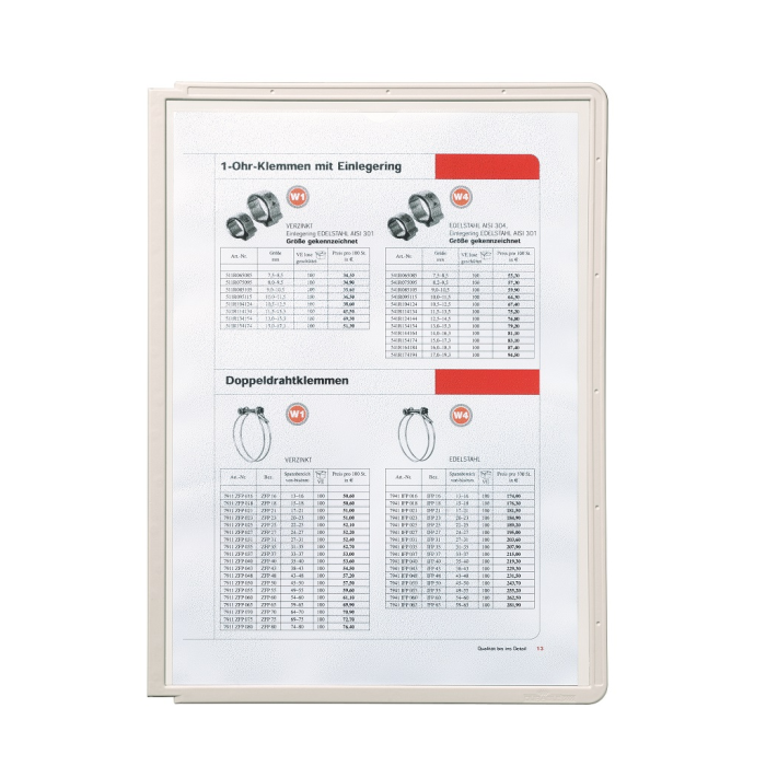 Displejový panel vyrobený z matného antireflexného polypropylénu pre systém Sherpa, kovové držiaky a rotačný stojan. Vložený materiál je kopírovateľný a skenovateľný. Pevný farebný rám s pozíciami pre indexy. Formát A4. Balenie 5 ks.