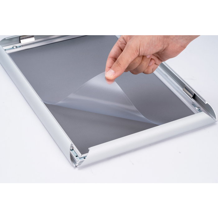 Vyrobené z vysoko kvalitného strieborného eloxovaného hliníka s veľkorysým 25 mm okrajovým profilom. Rámy sú odolné a poskytujú dlhotrvajúcu ochranu a výkon. Priehľadná fólia odolná voči odleskom chráni vaše dokumenty a plagáty.