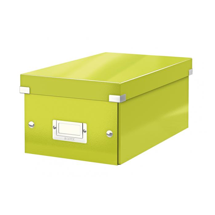 Atraktívna archivačná krabica vhodná na použitie v kancelárii i v domácnosti. Ideálna ukladanie DVD. Pevné a stabilné prevedenie. Materiál silný drevnatý kartón potiahnutý laminom. Úchyty, rámček na štítok, vystužené rohy krabice a spojovacie cvoky vyrobené z kovu. Krabica je dodávaná rozložená, jednotlivo zabalená. Veľmi skladná pri nepoužívaní. Rozmery 206×147×352 mm. Farba zelená.