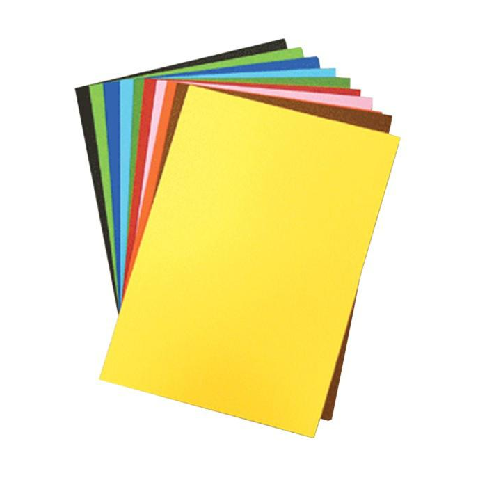 Farebné výkresy A4 s gramážou 225 g, balené vo fólii ako farebný mix, 50 hárkov - 10 farieb po 5 ks (žltá, oranžová, ružová, červená, ...).