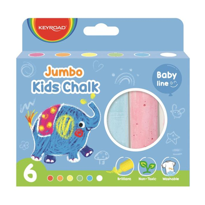 Krieda na kreslenie na ihriskách, séria Baby Line - pre najmladších, neodporúča sa pre deti do 3 rokov. Šírka: 2,4 - 2,1 cm, dĺžka: 10,4 cm. 6 kusov v balení. Farba: mix farieb.