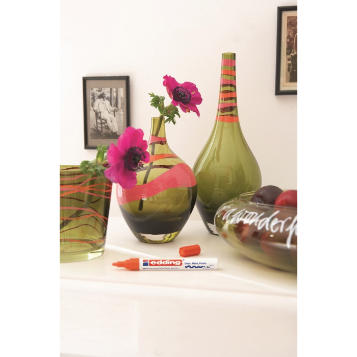 Lakový popisovač s hliníkovým obalom, vhodný pre vodovzdorné písanie, značkovanie a kreslenie na takmer všetky materiály. Nearomatický pigmentový atrament bez prísad toluénu/ xylénu rýchlo schne a vytvára úplne krycí lakovaný povrch, vhodný aj pre tmavé a priehľadné povrchy. Vysoká stálosť na svetle, nezmazateľnosť a odolnosť voči ohňu. Prietok atramentu riadený ventilom. Hrot okrúhly, šírka stopy 2 - 4 mm. Väčšie balenie 10 ks.