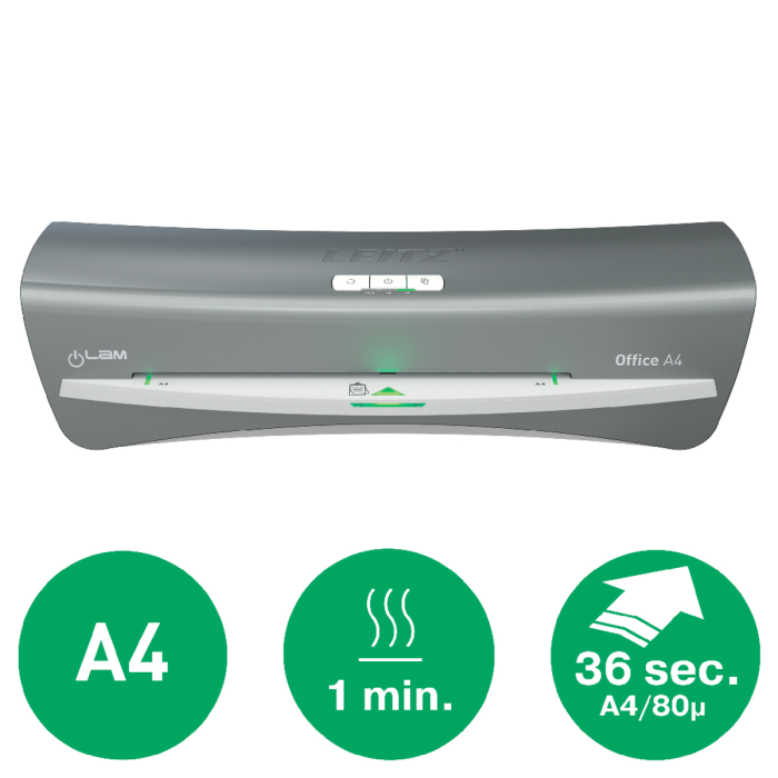 Kompaktné laminátory s rýchlym zahriatím. Ideálne pre menšie kancelárie. LED diódy a zvukový signál oznamujú, že je laminátor pripravený k práci. Nízka spotreba energie, automatické vypnutie po 30 minútach nečinnosti. Laminujú fotografie a iné dokumenty bez nosiča do hrúbky fólie 125 mic. Doba nahrievania cca 1 min. Odporúčané používať s Leitz UDT laminovacími fóliami. Certifi kované GS/ TUV/ CE. Farba sivá. Šírka vstupu 230 mm.