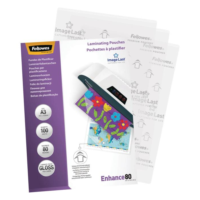 Laminovacie fólie Fellowes kvalitne a dlhodobo ochránia dokumenty pred znehodnotením a vplyvmi prostredia. Vyznačujú sa priezračnosťou a nízkou teplotou potrebnou na laminovanie.