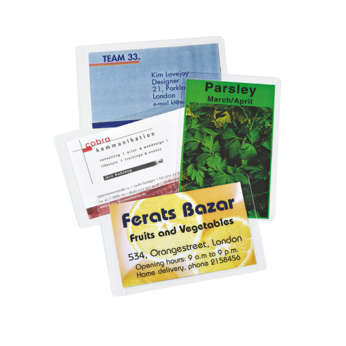Pre lamináciu malých dokumentov veľkosti karty. Perfektná ochrana veľmi často používaných vernostných kariet, visačiek, menoviek atp.