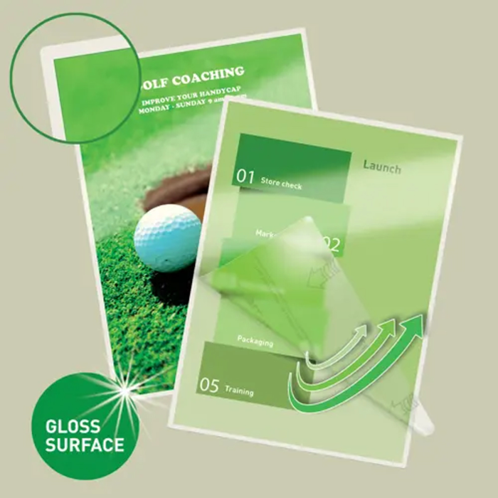 - Dlhodobá ochrana dokumentu pred nečistotou, tekutinou a vlhkosťou. Štandardná tuhosť laminácie.