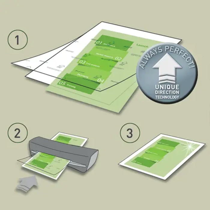 Už žiadne obavy, že vložíte obal do laminátora nesprávnym smerom. Jedinečná smerovacia technológia (UDT) prináša dokonalé výsledky. Obaly najvyššej kvality chránia zalaminovaný dokument.