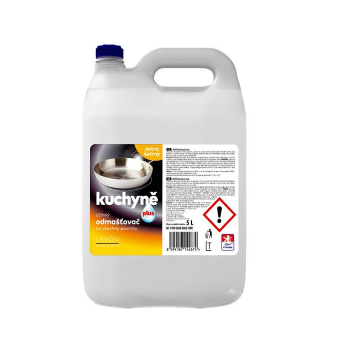 Lavon kuchyňa je extra šetrný univerzálny odmasťovač na všetky povrchy v kuchyniach aj inde v domácnosti. Pre ľahké a vysoko účinné odstránenie nečistôt, tukov, zapečenín a zaschnutej mastnoty. Vhodný na riad, digestory, kuchynské linky, mikrovlnné rúry, sporáky, drezy, žalúzie, kachličky a škáry. Zanecháva povrchy žiarivo lesklé.