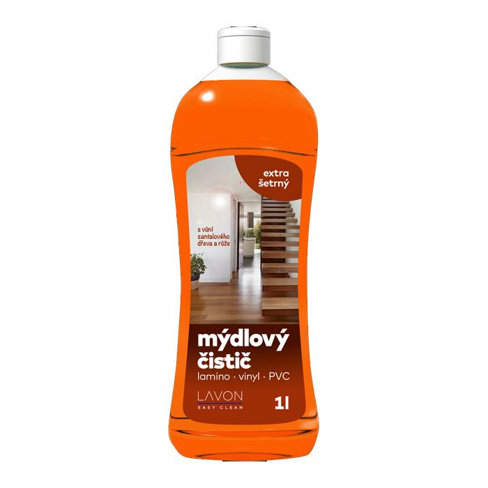LAVON mydlový čistič  je účinný prostriedok s obsahom mydla na dokonalé čistenie bez šmúh. Je vhodný na podlahy a umývateľné povrchy: lamino, vinyl, PVC, linoleum, dlažba, mramor...apod. Jemná vôňa santalového dreva a ruže príjemne prevonia všetky priestory.