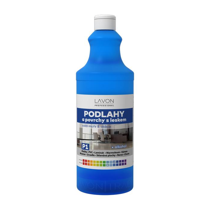 Lavon podlahy a povrchy s leskom je špeciálny čistič s alkoholom na všetky druhy podláh a umývateľných povrchov na ručné umývanie. Na dlažby, PVC, laminát, marmoleum, kameň, mramor, zrkadlá, sklenené plochy, nerez, chróm. Super lesklé povrchy bez šmúh a intenzívne prevoňané priestory.