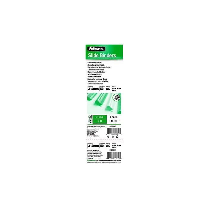 Násuvné lišty z plastu so zaobleným rohom na bezproblémové nasúvanie listov do lišty. Veľkosť 3-60 listov. Formát A4. Balenie 50 ks. Kapacita listov: 3-60 Farba: biela